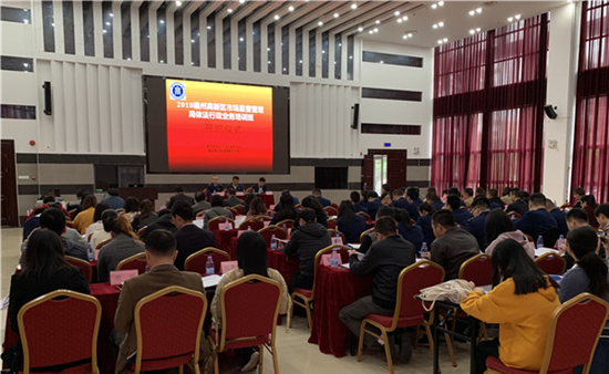 12月6日-7日,由福州高新区市场监督管理局主办,我校beat365官方网站承办的“2018年福州高新区市场监督管理局依法行政业务培训班”在福建中医药大学国际中医药培训中心开班。福州高新区市场监督管理局副局长李迎春,福州高新区党工委委员、管委会副调研员熊国华,副院长方方以及来自福州高新区市场监督管理局的干部职工、各企业人员共107名学员参加培训,开班仪式由李迎春主持。